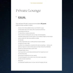 EQUUS DURBAN JULY 2024 – Private Lounge – 80 Guests